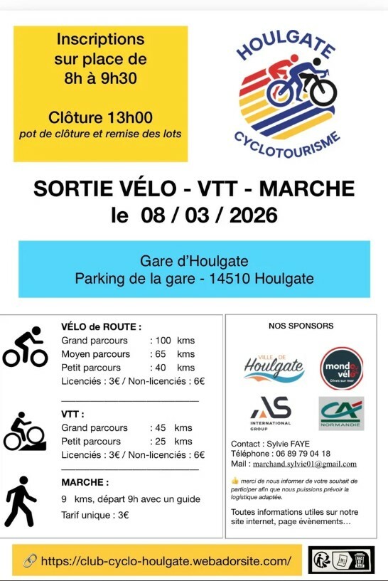 Le Cyclo Club de Houlgate propose une randonnée Cyclo, la 2ème prévue à notre calendrier 2026.
